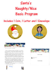 The North Pole Naughty/Nice Basic Program – Basic Program includes one coin, letter and envelope only. Every child has their moments. Times when they are uncooperative, not helpful or being just plain naughty. Sometimes they will listen to you, other times not. Well, Santa Claus and Keeney Eagleye are ready to help you take back control.
